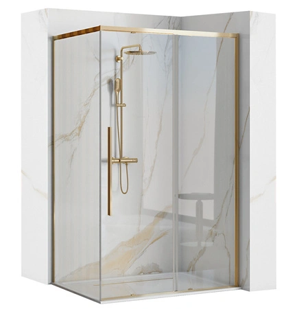 - Kabina prysznicowa Solar to stylowe i funkcjonalne rozwiązanie z przesuwnymi drzwiami, szkłem hartowanym 6 mm i powłoką Easy Clean. Wykończenie w kolorze złota nadaje elegancji. Montaż na brodziku lub posadzce, regulacja profili.