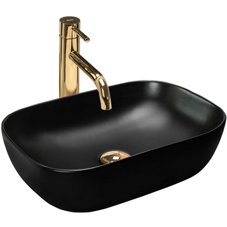 - Belinda Black Mat to elegancka umywalka nablatowa o prostokątnym kształcie i matowym wykończeniu. Wykonana z ceramiki sanitarnej, łączy trwałość z nowoczesnym stylem. Czarny kolor z barwnikiem polimerowym gwarantuje intensywność i trwałość.