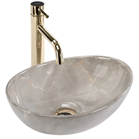 - Umywalka nablatowa Sofia Mini Kashmir w kaszmirowym odcieniu z połyskiem kamienia łączy elegancję z nowoczesnym stylem. Przeznaczona do montażu na blacie lub szafce, idealnie wpisuje się w różne aranżacje, dodając wnętrzu luksusu i naturalnego akcentu.