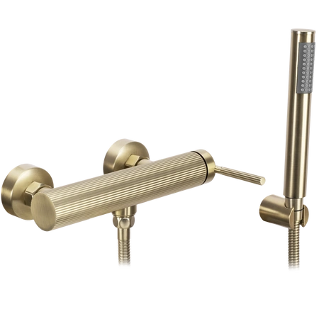 - Natynkowa bateria prysznicowa Rea Argon w kolorze szczotkowanego złota. Jej unikalny, ryflowany korpus i trwała powłoka PVD podkreślają luksusowy design. Wykonana z mosiądzu,