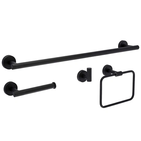 - Podkreśl charakter nowoczesnej łazienki z kompletem akcesoriów Rea Grid w kolorze czarnym. Ten 4-częściowy zestaw z metalu to idealny wybór do wnętrz w stylu loft i industrial. Gwarantuje spójny design, trwałość i funkcjonalność w odważnym wydaniu.