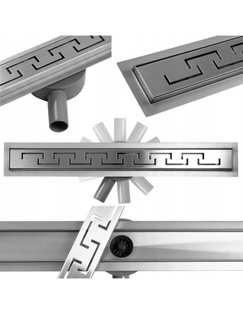 - Odpływ liniowy Grecos 360 Chrom ze stali AISI 304. Posiada obrotowy syfon 360°, ułatwiający montaż, oraz solidną maskownicę (1,5 mm). W komplecie: nóżki, mata Dry-Fix, syfon i koszyk. Trwałość i elegancja na lata.