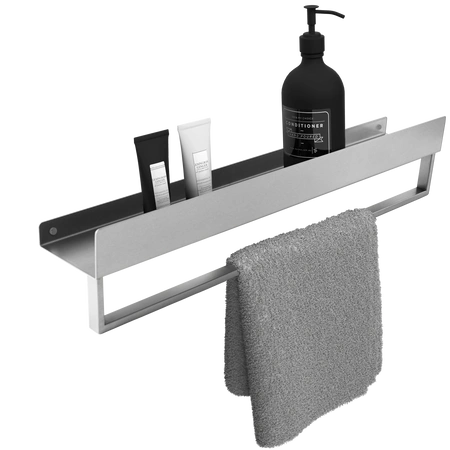 - Półka przyścienna z wieszakiem na ręczniki SF01 ze stali nierdzewnej. Odporna na zarysowania, trwała i łatwa w montażu na dowolnej wysokości. Łączy nowoczesny design z funkcjonalnością, pomagając utrzymać porządek i elegancję w łazience.