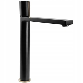 Wysoka Bateria Umywalkowa Icon Czarna Złota Wysoka