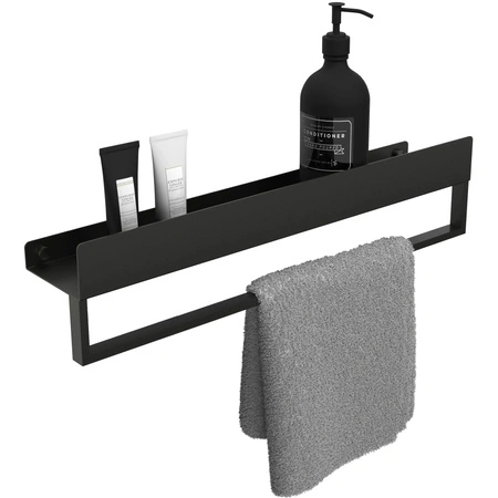 Praktyczna półka z wieszakiem umożliwi utrzymanie ładu i porządku w łazience, a jednocześnie jej nowoczesny wygląd sprawi, że stanie się ona także atrakcyjnym elementem dekoracyjnym.